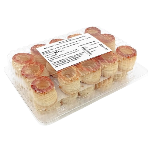 Cojile de mini tarte Eurocas sunt gata de folosit! Trebuie doar sa le umpli cu cremele tale favorite si poti crea deserturi sau candy bar-uri cu o multime de arome si culori atractive. Avem disponibile 3 dimensiuni, atat la cutie cat si la caserole mici.